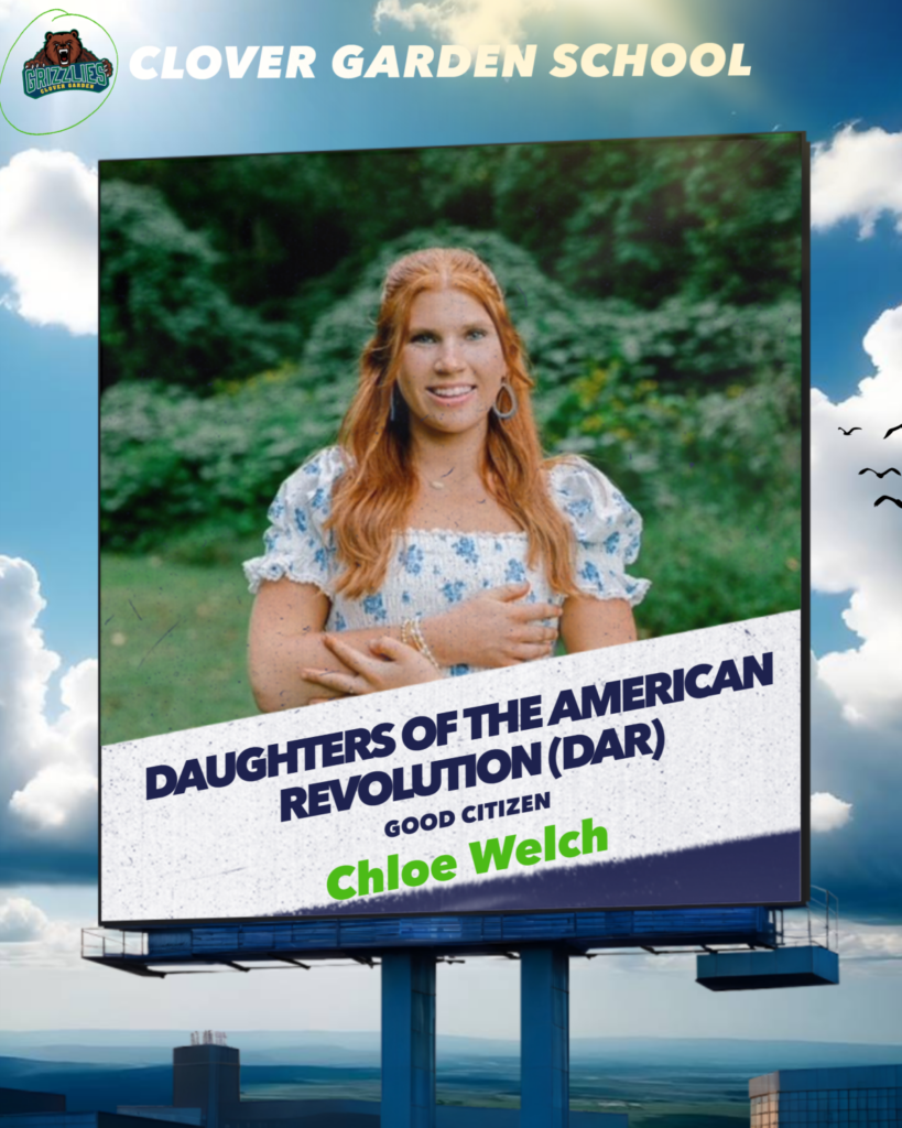 We are pleased to recognize Chloe Welch, who was nominated by her teachers to represent Clover Garden School as this year’s Daughters of the American Revolution (DAR) Good Citizen.
